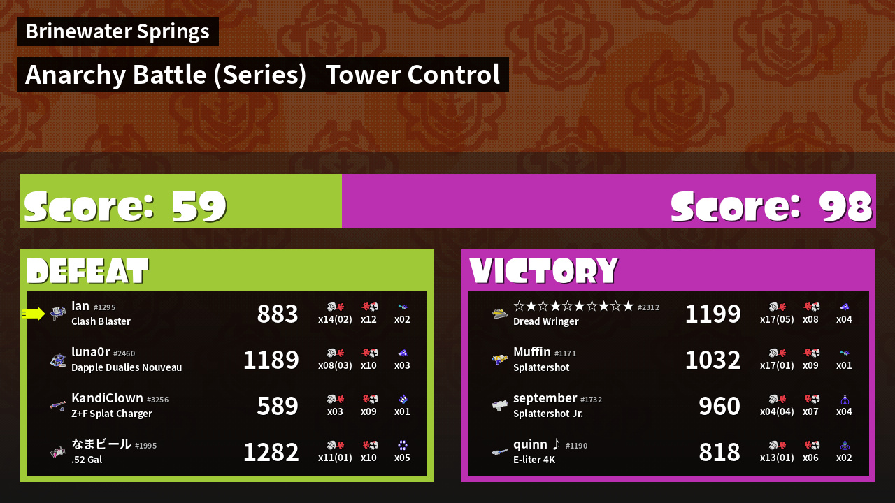 | Medals | #1 Overall Splatter #1 Popular Target #1 Enemy Splatter | ||