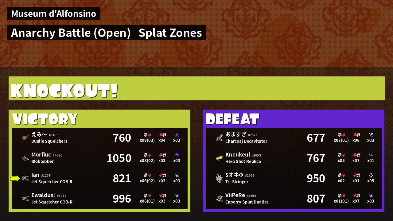 | Mode | Splat Zones - Anarchy Battle (Open) | ||
