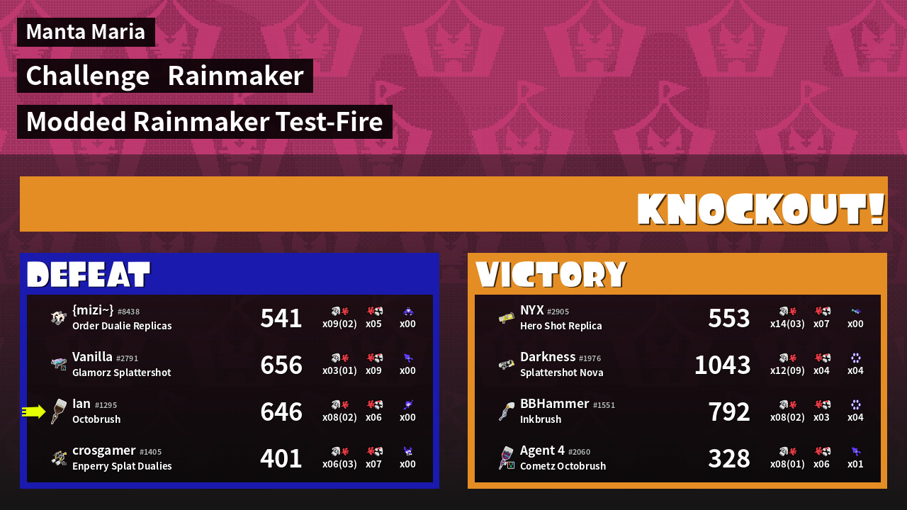 Kills / Deaths | 6 + 2 / 6 = Kill Ratio: 1.00 | ||