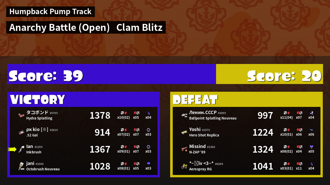 | Mode | Clam Blitz - Anarchy Battle (Open) | ||