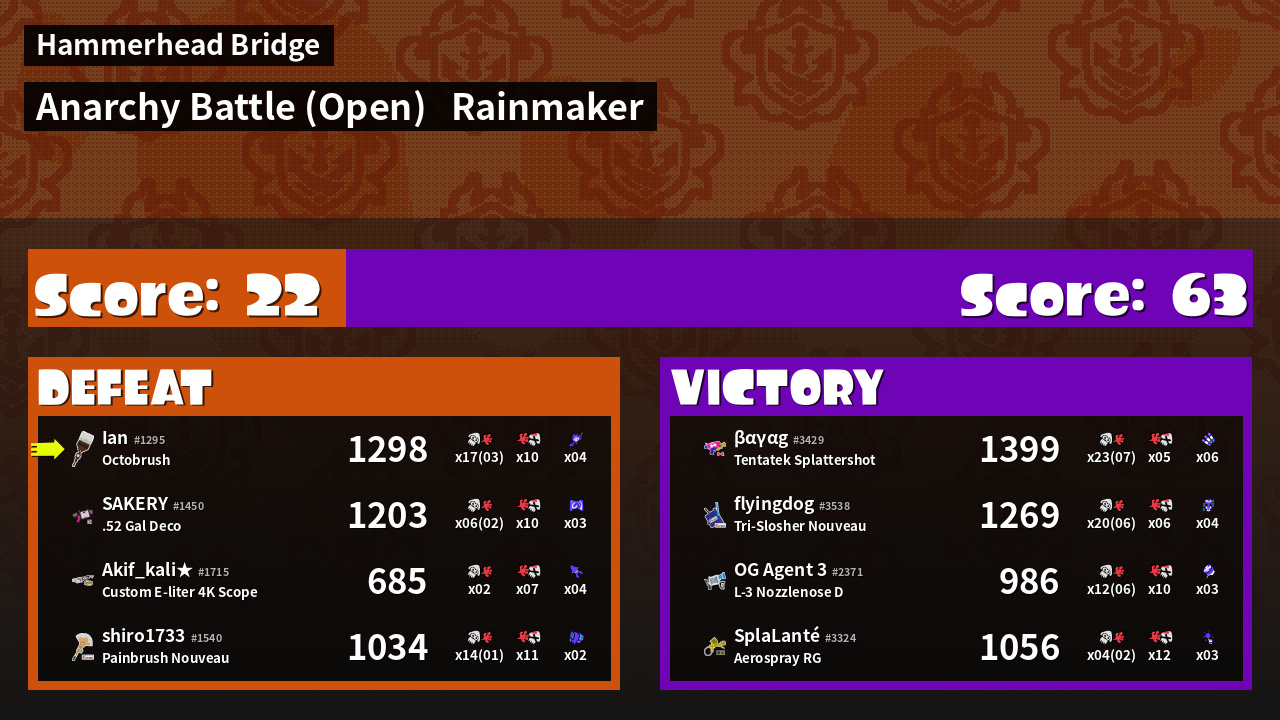 | Mode | Rainmaker - Anarchy Battle (Open) | ||