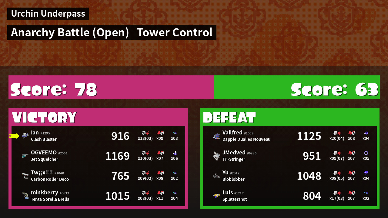 | Mode | Tower Control - Anarchy Battle (Open) | ||
