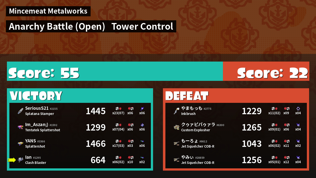 | Mode | Tower Control - Anarchy Battle (Open) | ||