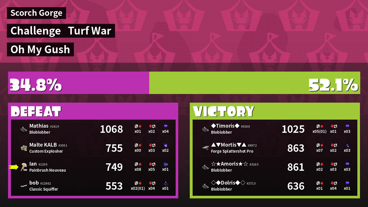 | Medals | #1 Overall Splatter #1 Super Jump Spot #1 Enemy Splatter | ||