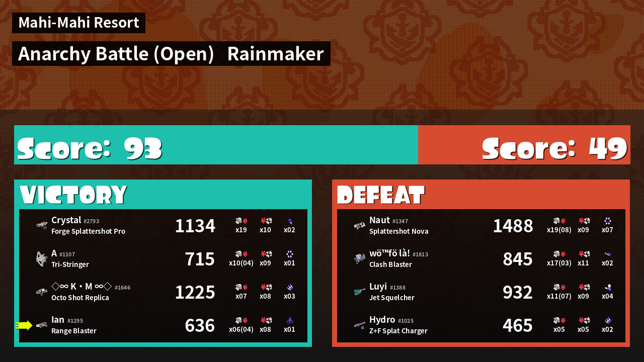| Mode | Rainmaker - Anarchy Battle (Open) | ||