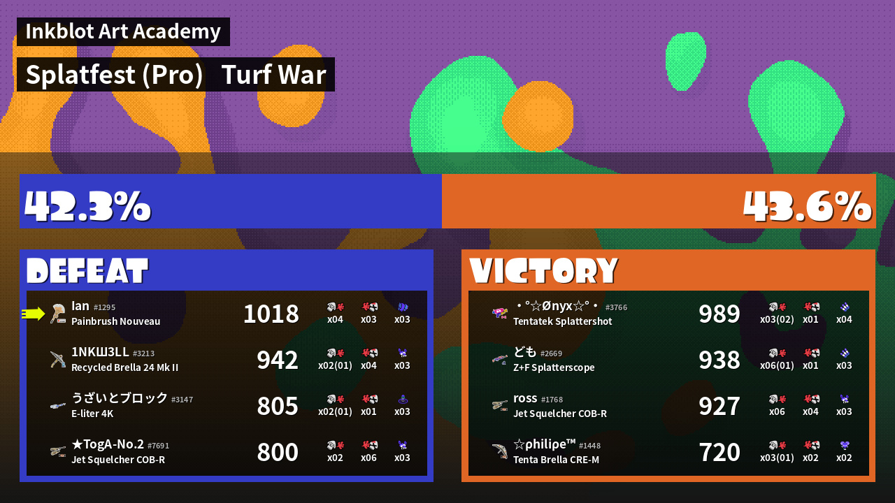 | Medals | #1 Overall Splatter #1 Turf Inker #1 Enemy-Base Inker | ||