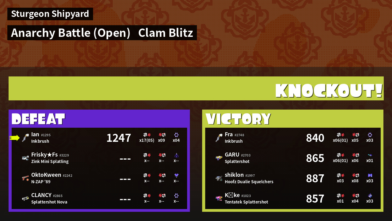 Name | Weapon | Inked | ![]() |