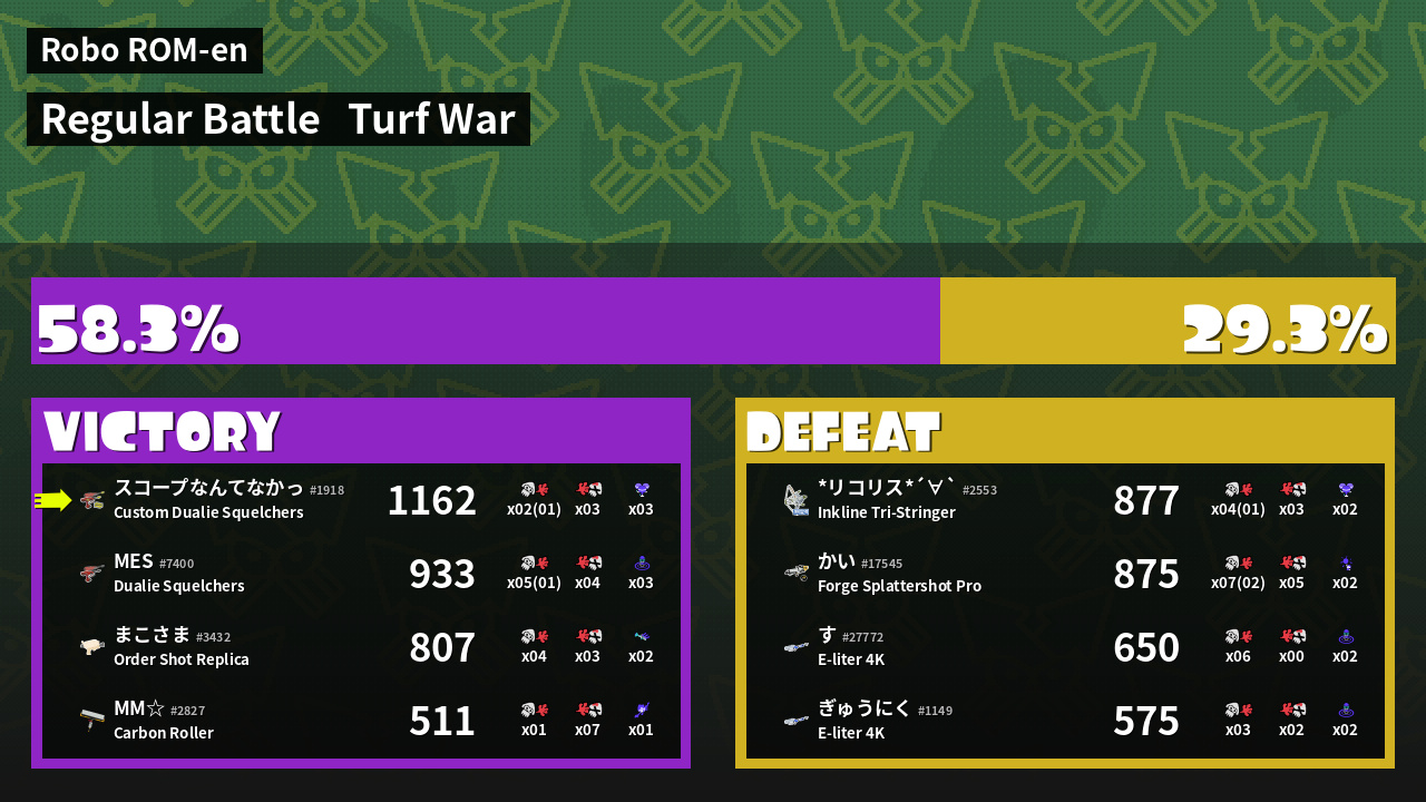 | Medals | #1 Turf Inker #1 Enemy-Base Inker #1 Splat Assister | ||