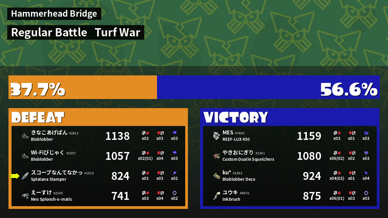 | Mode | Turf War - Regular Battle | ||