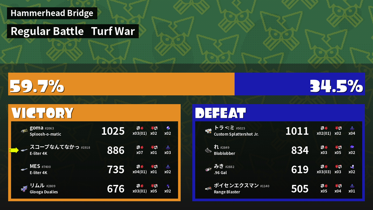 | Medals | #1 Overall Splatter #1 Enemy Splatter #1 Damage Taker | ||