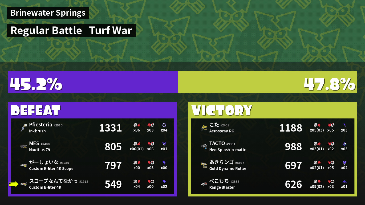 | Mode | Turf War - Regular Battle | ||