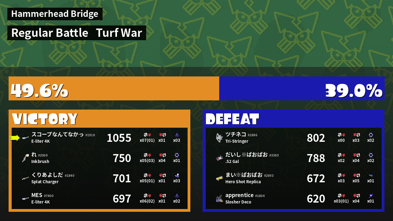 | Medals | #1 Overall Splatter #1 Turf Inker #1 Enemy-Base Inker | ||