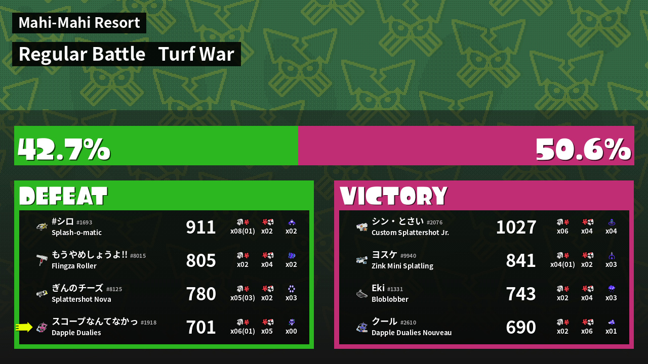 | Medals | #1 Enemy-Base Inker First Splat! #2 Overall Splatter | ||