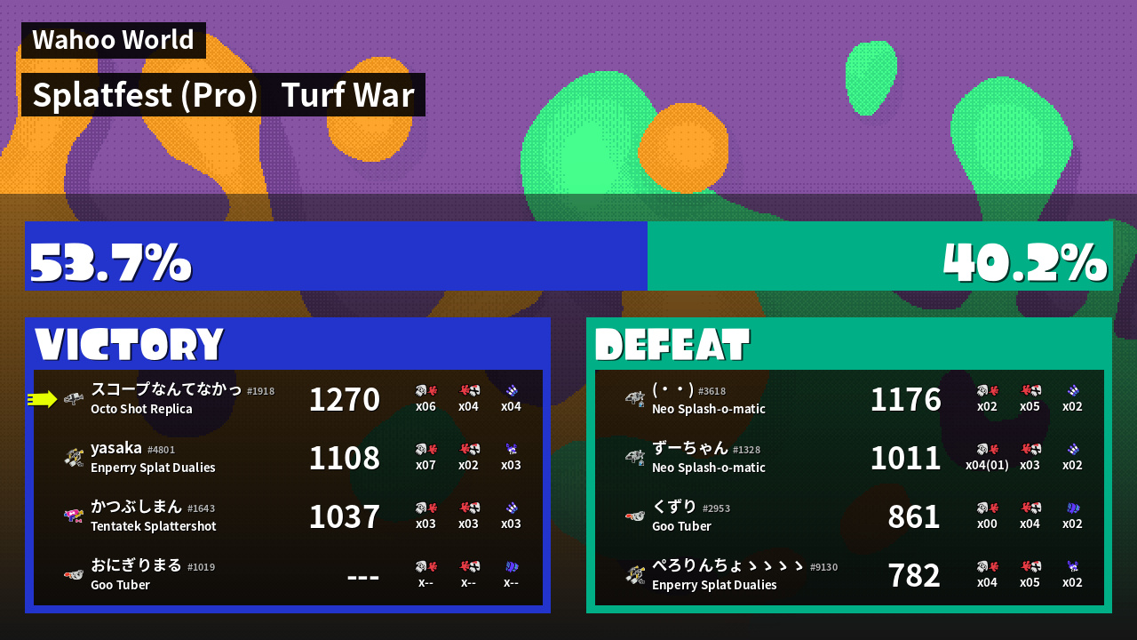 | Mode | Turf War - Splatfest (Pro) | ||