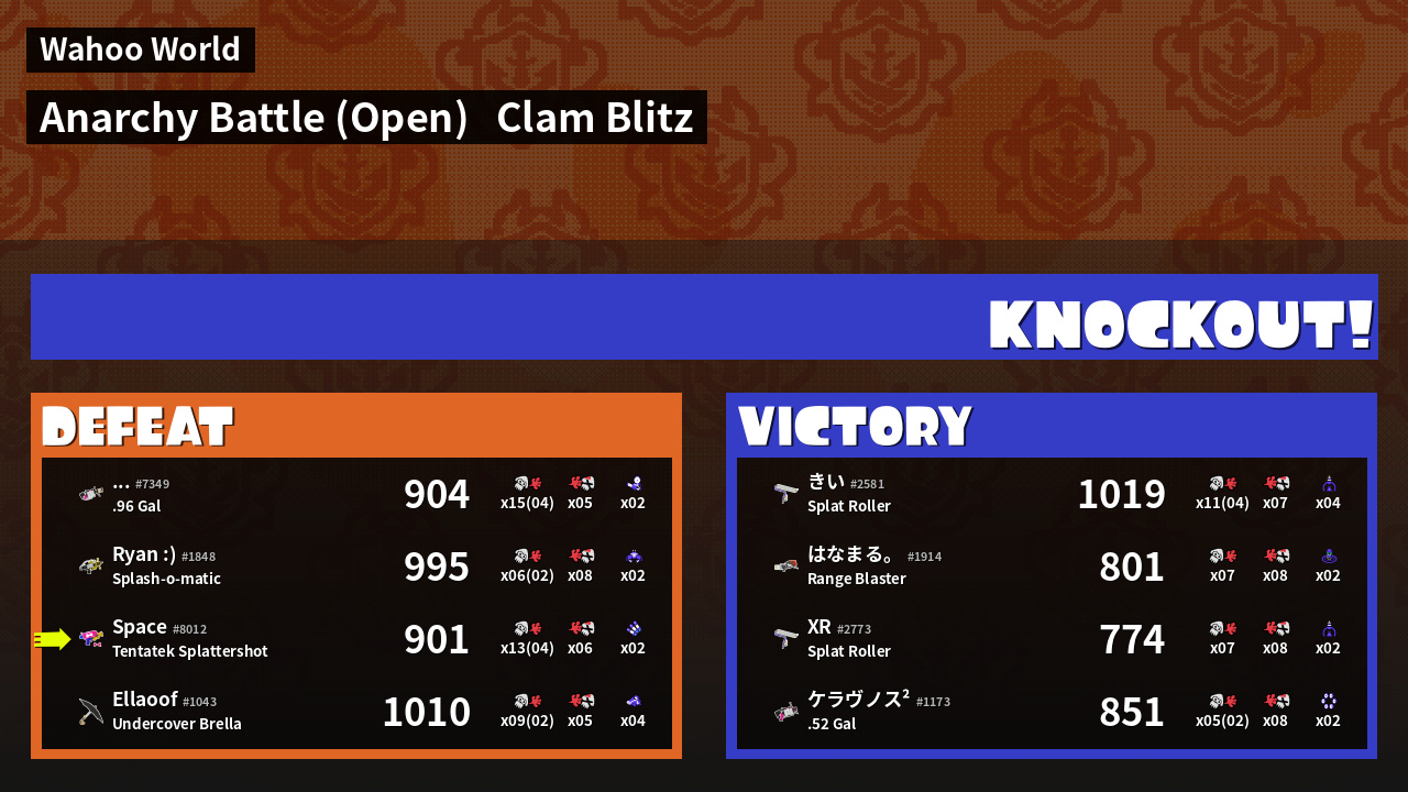 | Mode | Clam Blitz - Anarchy Battle (Open) | ||