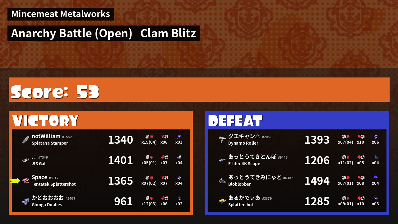| Mode | Clam Blitz - Anarchy Battle (Open) | ||