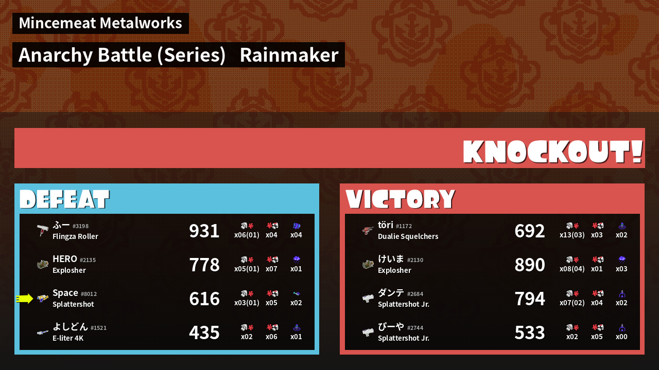 | Medals | #1 Splat Assister #1 Rainmaker Carrier #1 Ink Consumer | ||