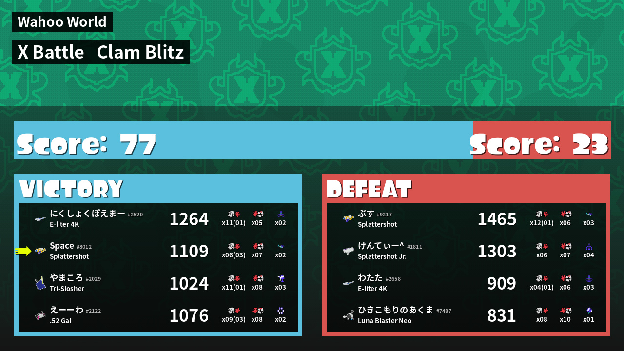 | Mode | Clam Blitz - X Battle | ||