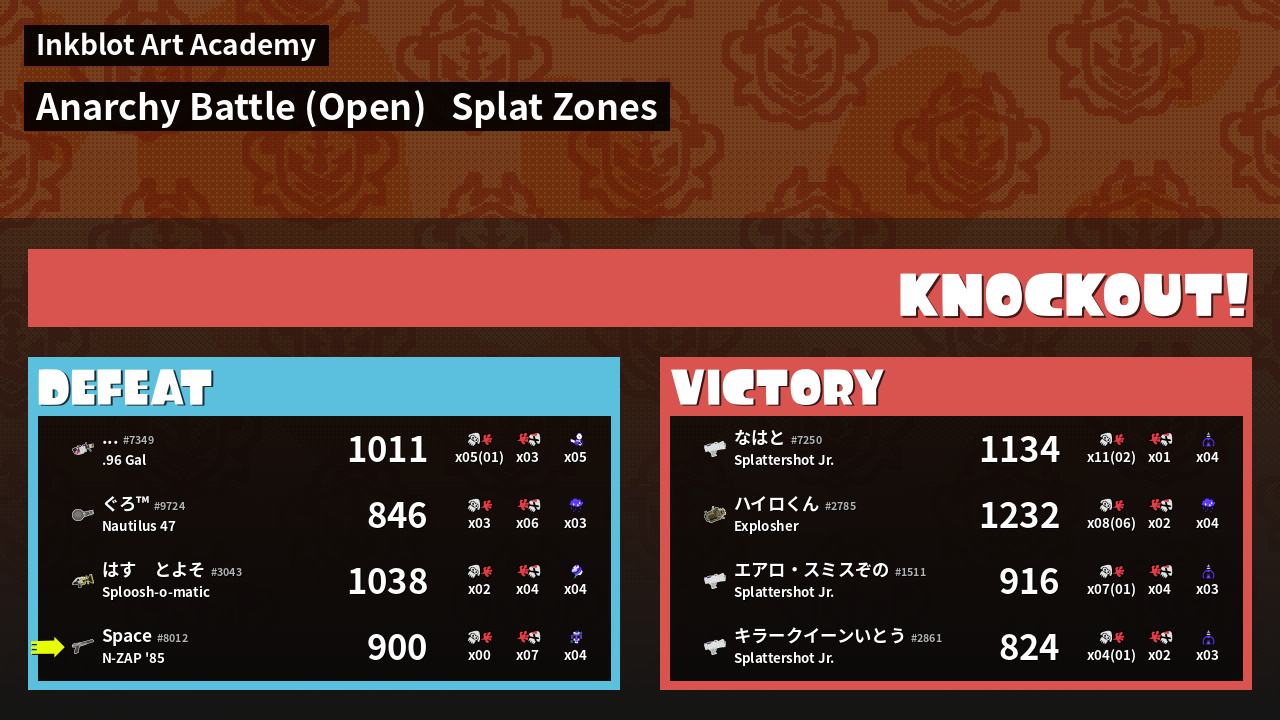 | Mode | Splat Zones - Anarchy Battle (Open) | ||