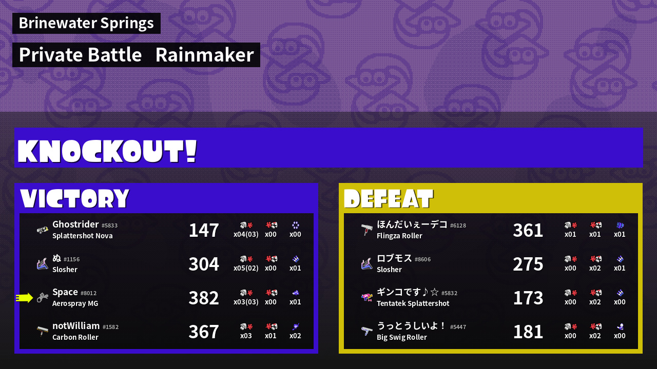 | Medals | #1 Turf Inker #1 Splat Assister #2 Popular Target | ||