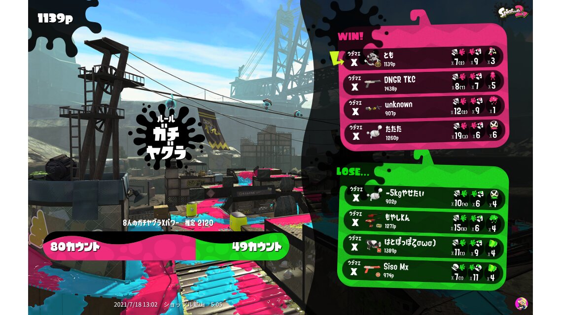 | Name | Weapon | Level | Rank | Inked | k+a/sp | k/d |