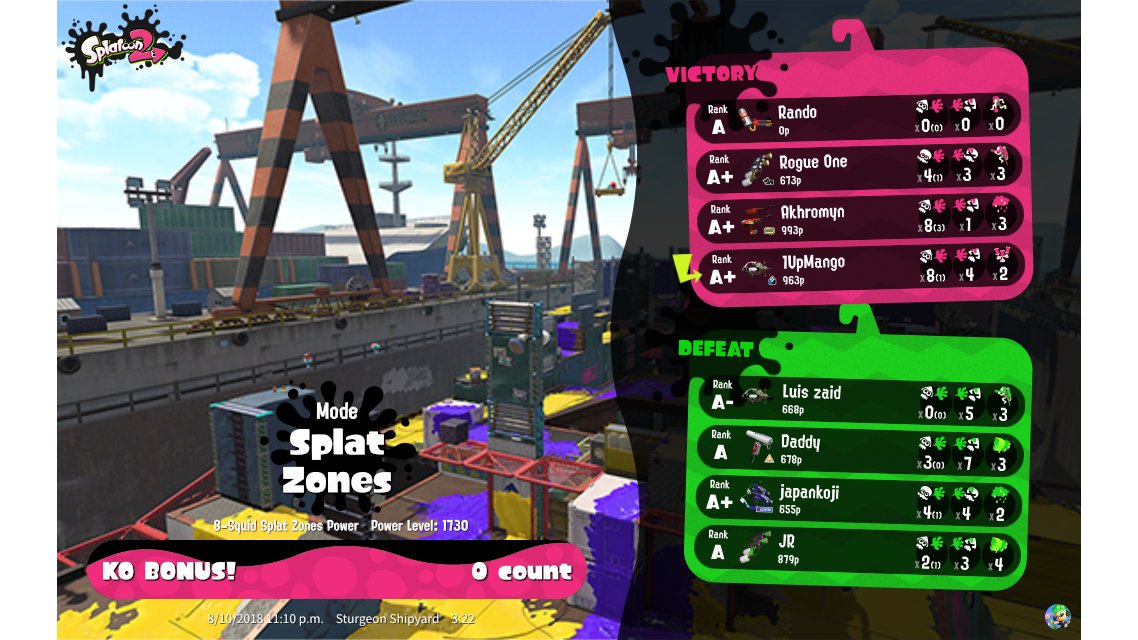 | Mode | Splat Zones - Ranked Battle | |||||||||||||||||||||||||||||||||||||