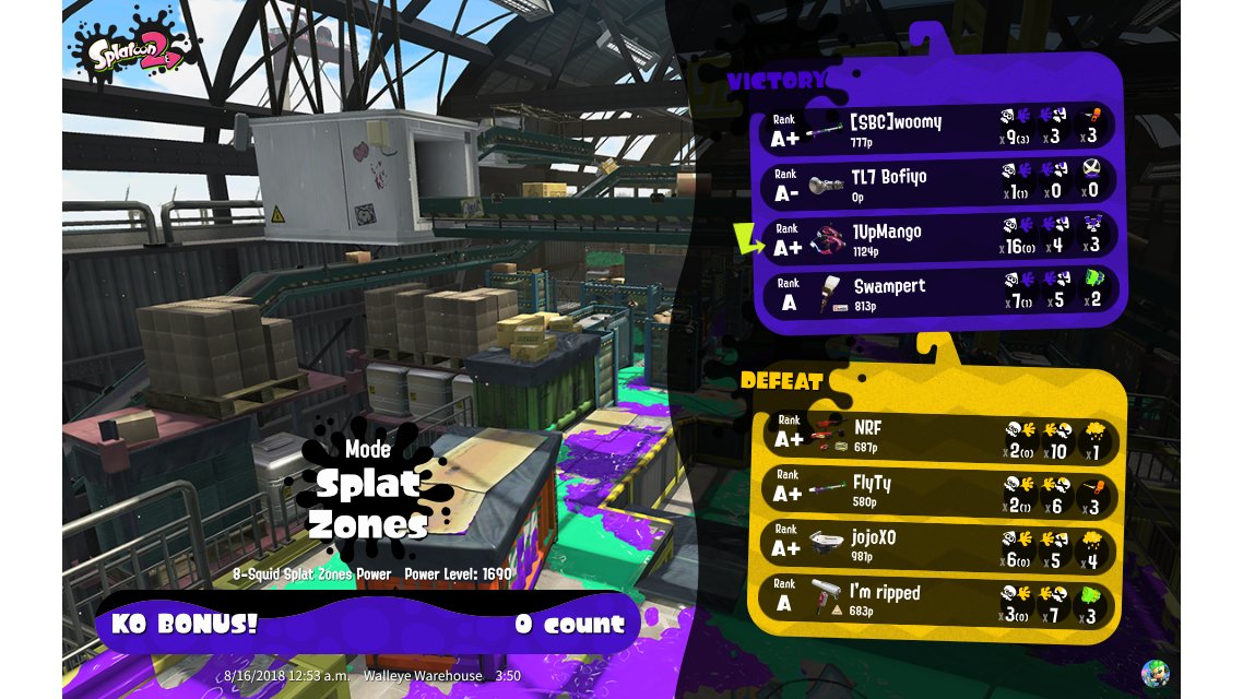 | Mode | Splat Zones - Ranked Battle | |||||||||||||||||||||||||||||||||||||