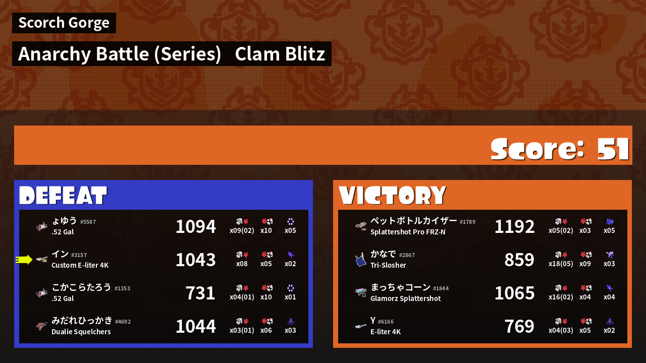 Results of イン's Battle