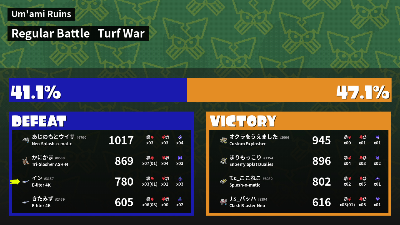 | Weapon | E-liter 4K ( Ink Mine / Wave Breaker) |