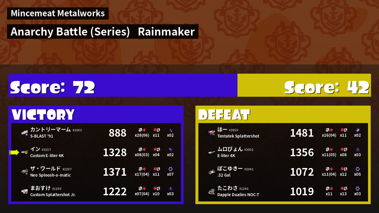 | Mode | Rainmaker - Anarchy Battle (Series) |