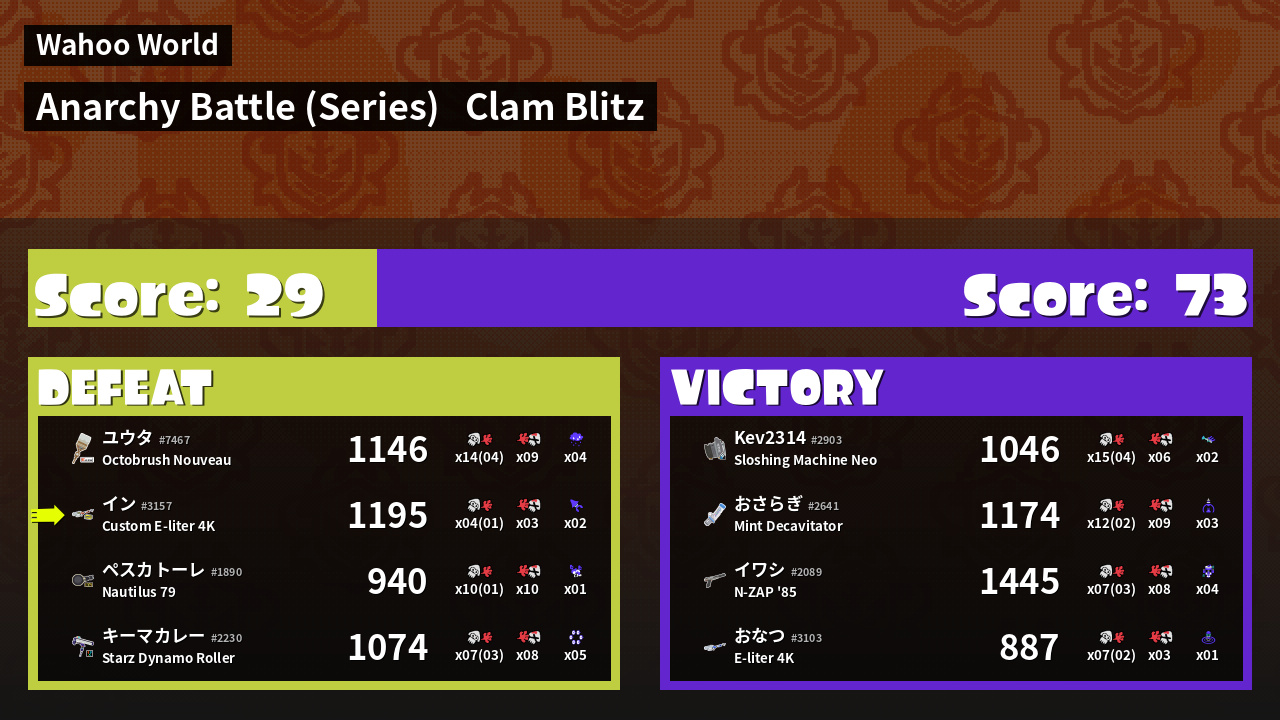 | Mode | Clam Blitz - Anarchy Battle (Series) |