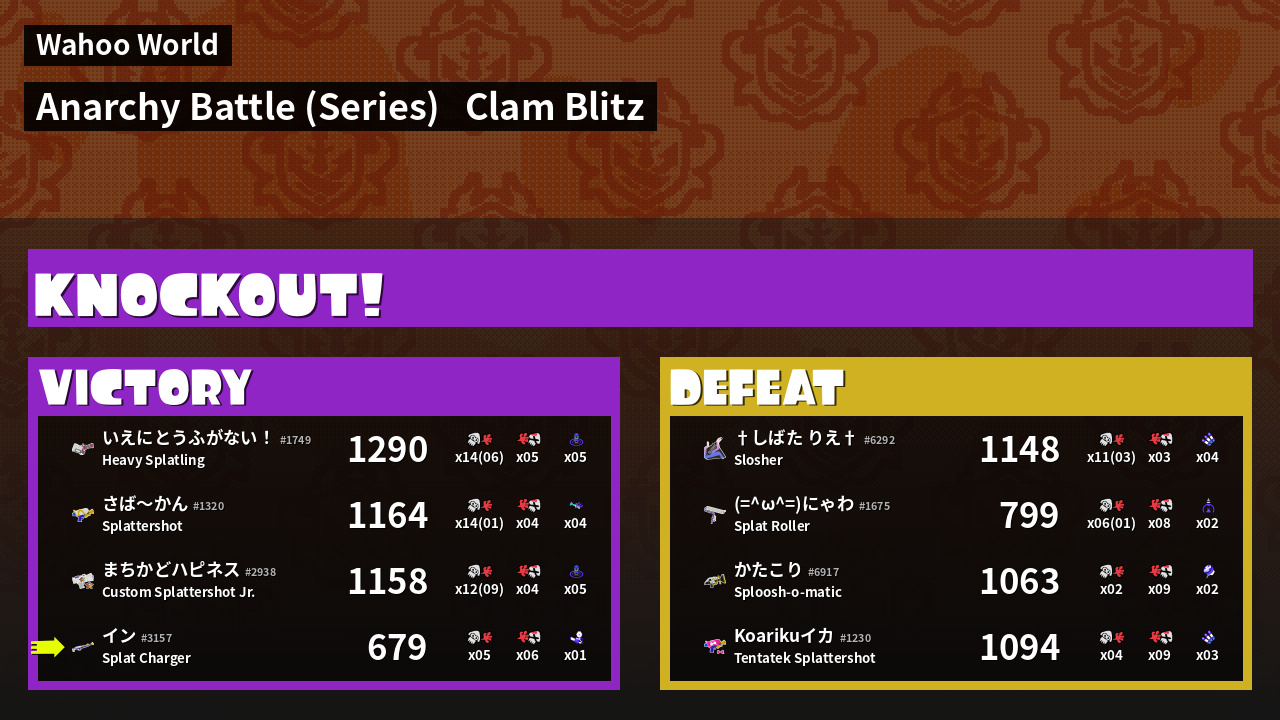 | Mode | Clam Blitz - Anarchy Battle (Series) | ||