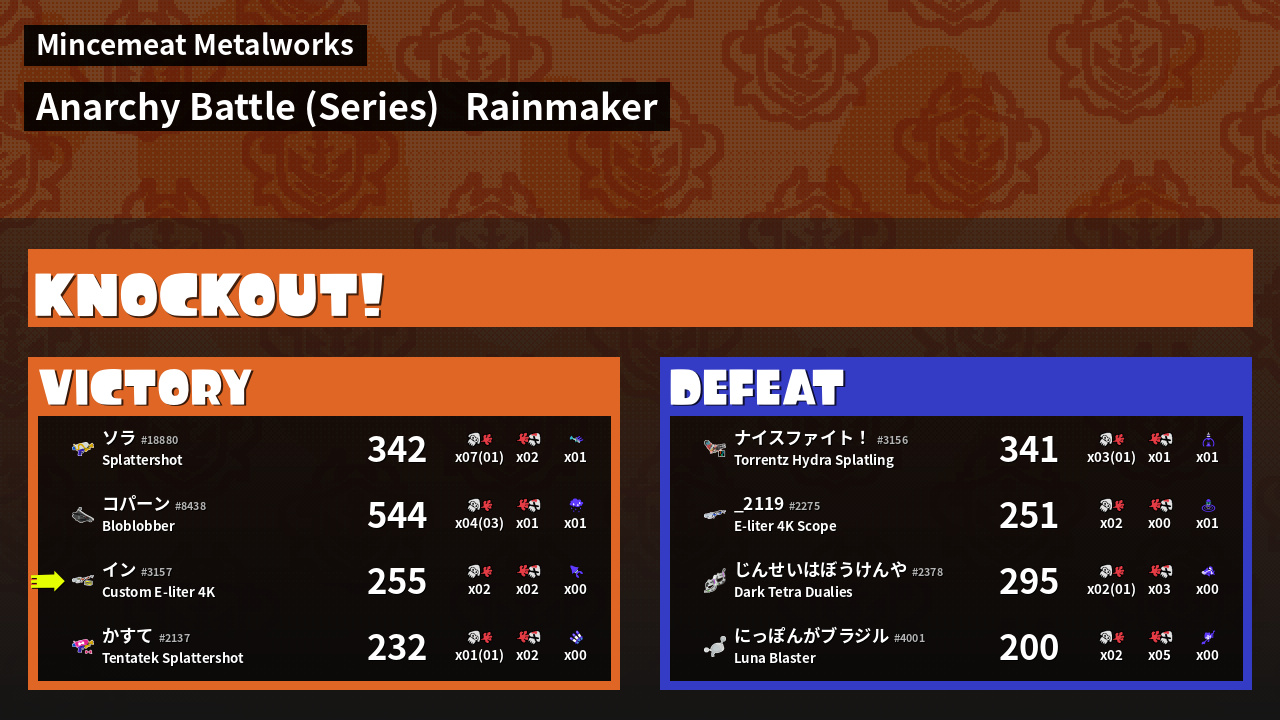 | Mode | Rainmaker - Anarchy Battle (Series) |