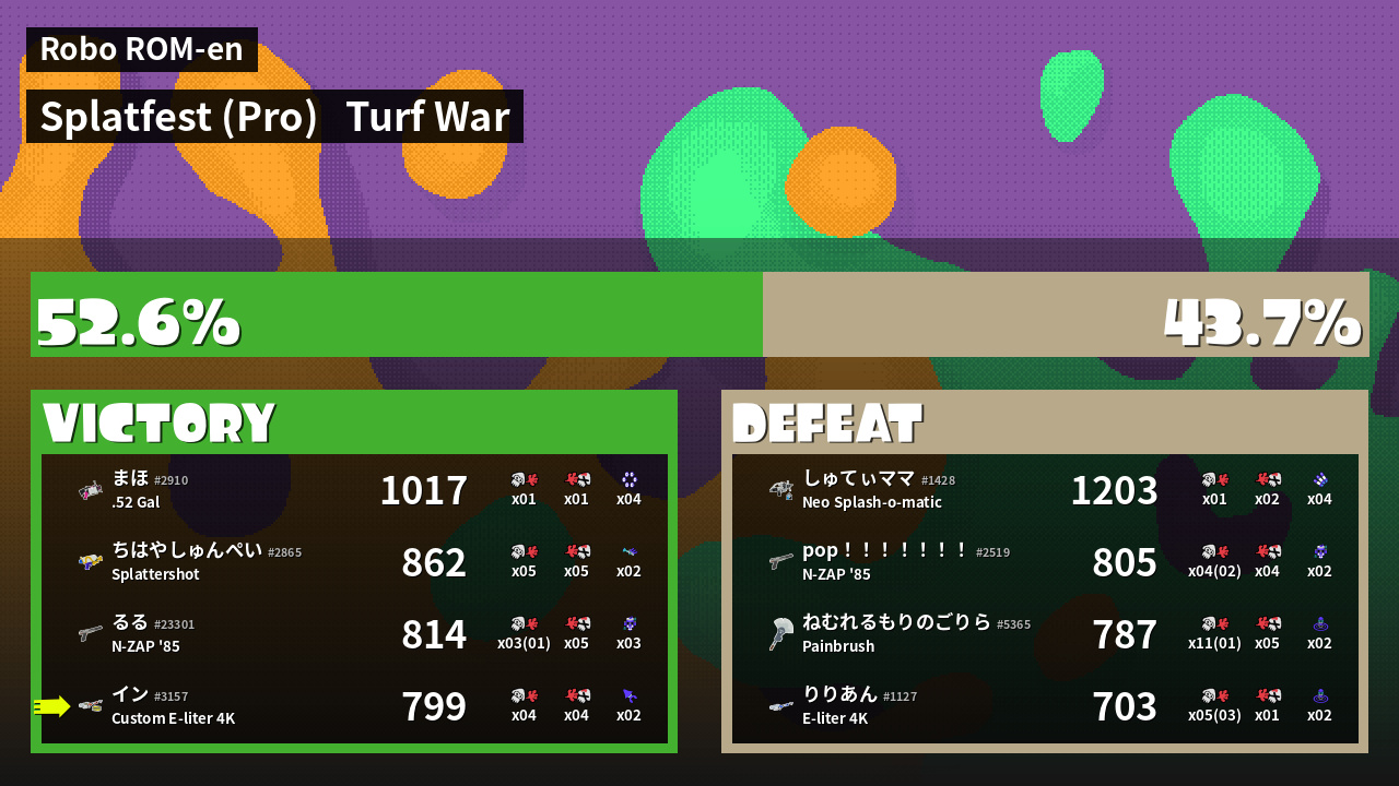 | Mode | Turf War - Splatfest (Pro) | ||