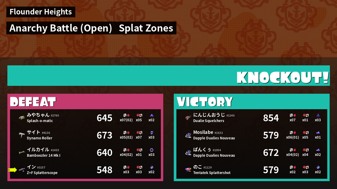 | Mode | Splat Zones - Anarchy Battle (Open) | ||