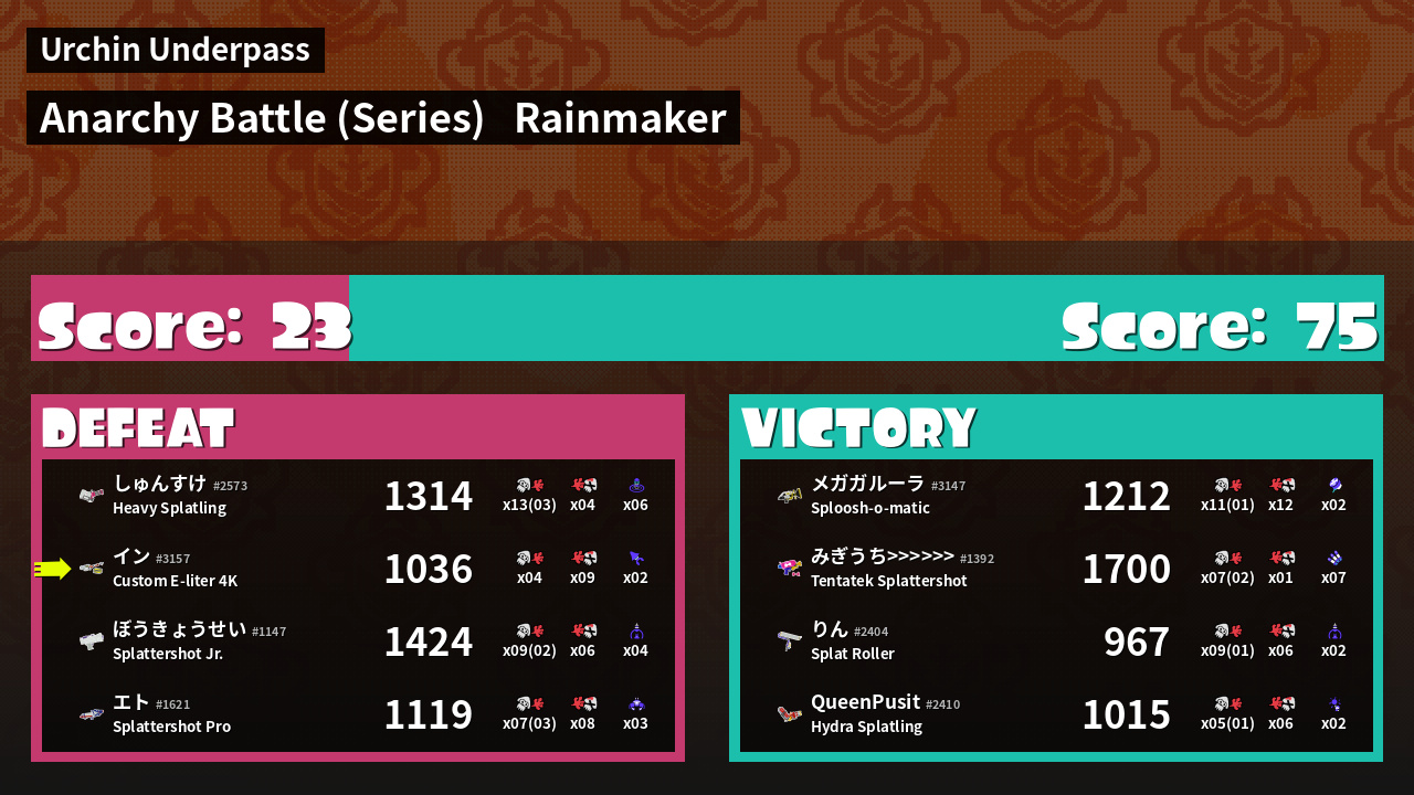 | Mode | Rainmaker - Anarchy Battle (Series) |