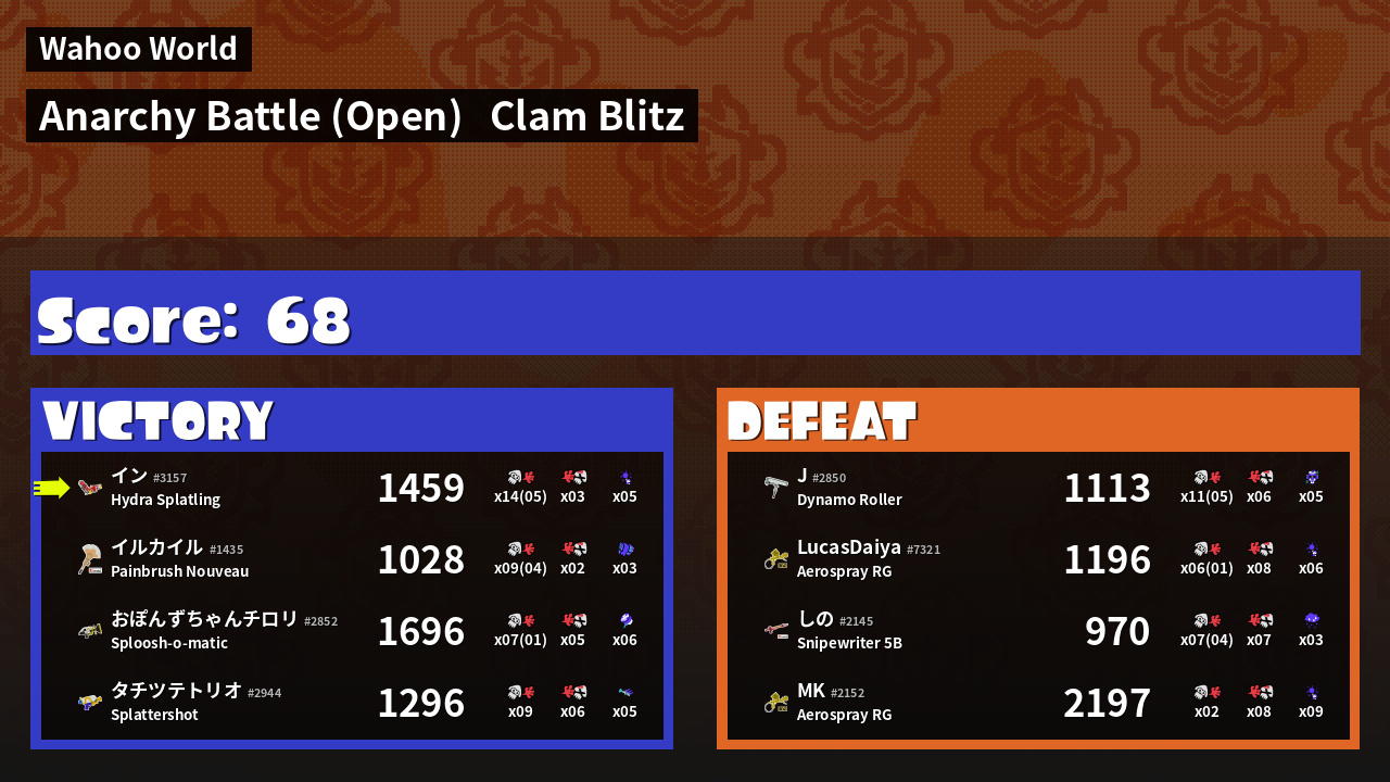 | Mode | Clam Blitz - Anarchy Battle (Open) | ||