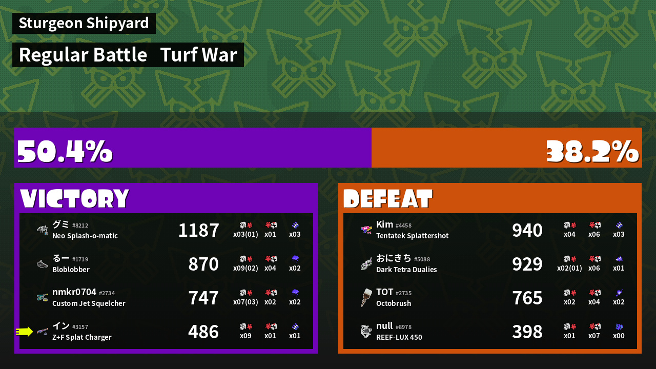 | Medals | #1 Overall Splatter #1 Popular Target #1 Enemy Splatter | ||