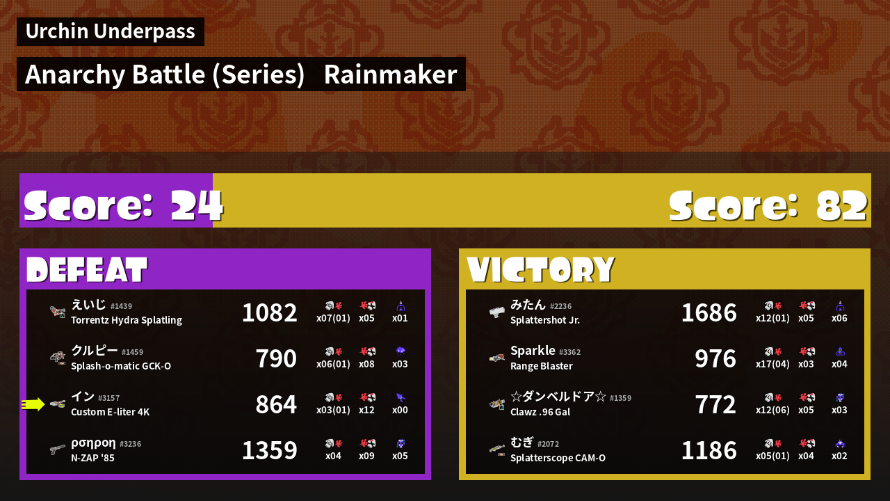 | Mode | Rainmaker - Anarchy Battle (Series) |