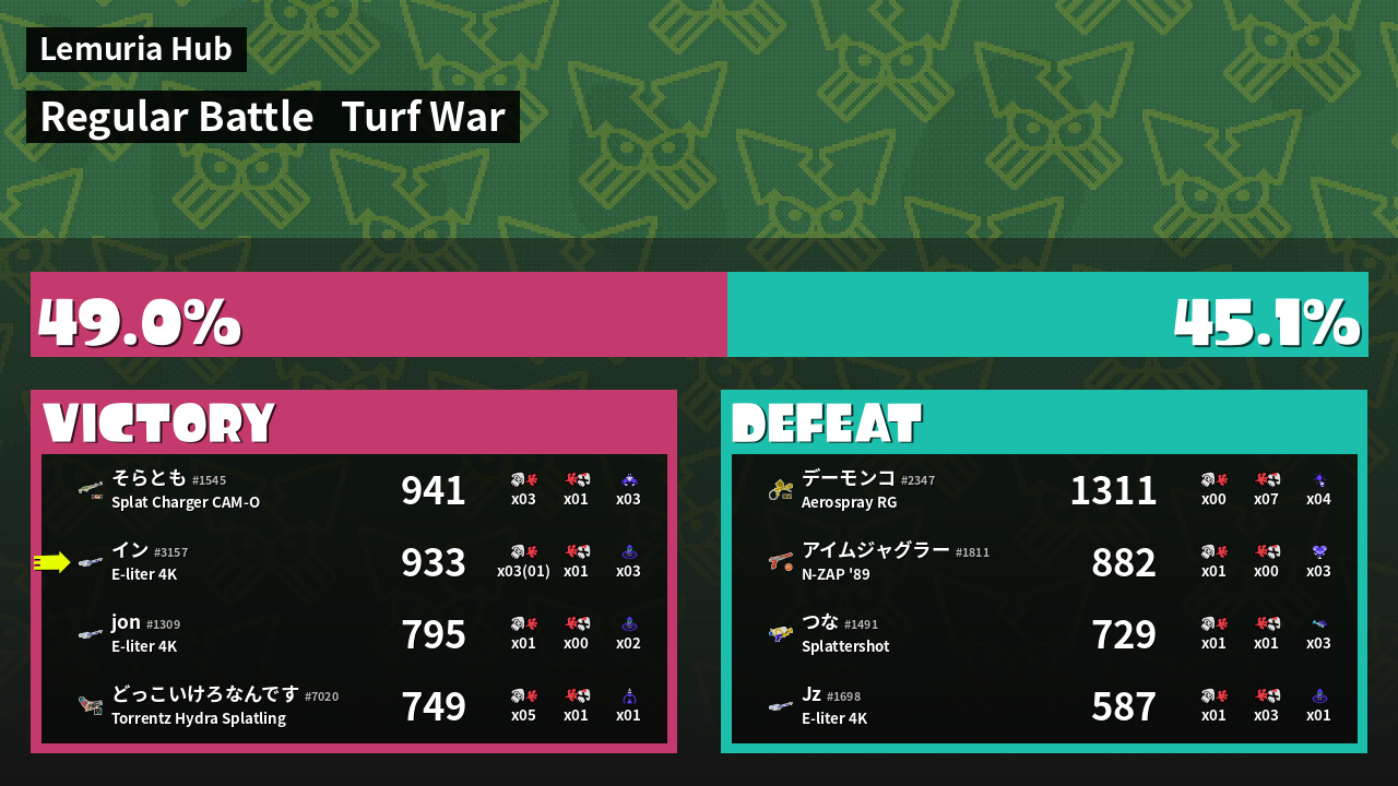 | Medals | #1 Splat Assister #2 Overall Splatter #2 Turf Inker |