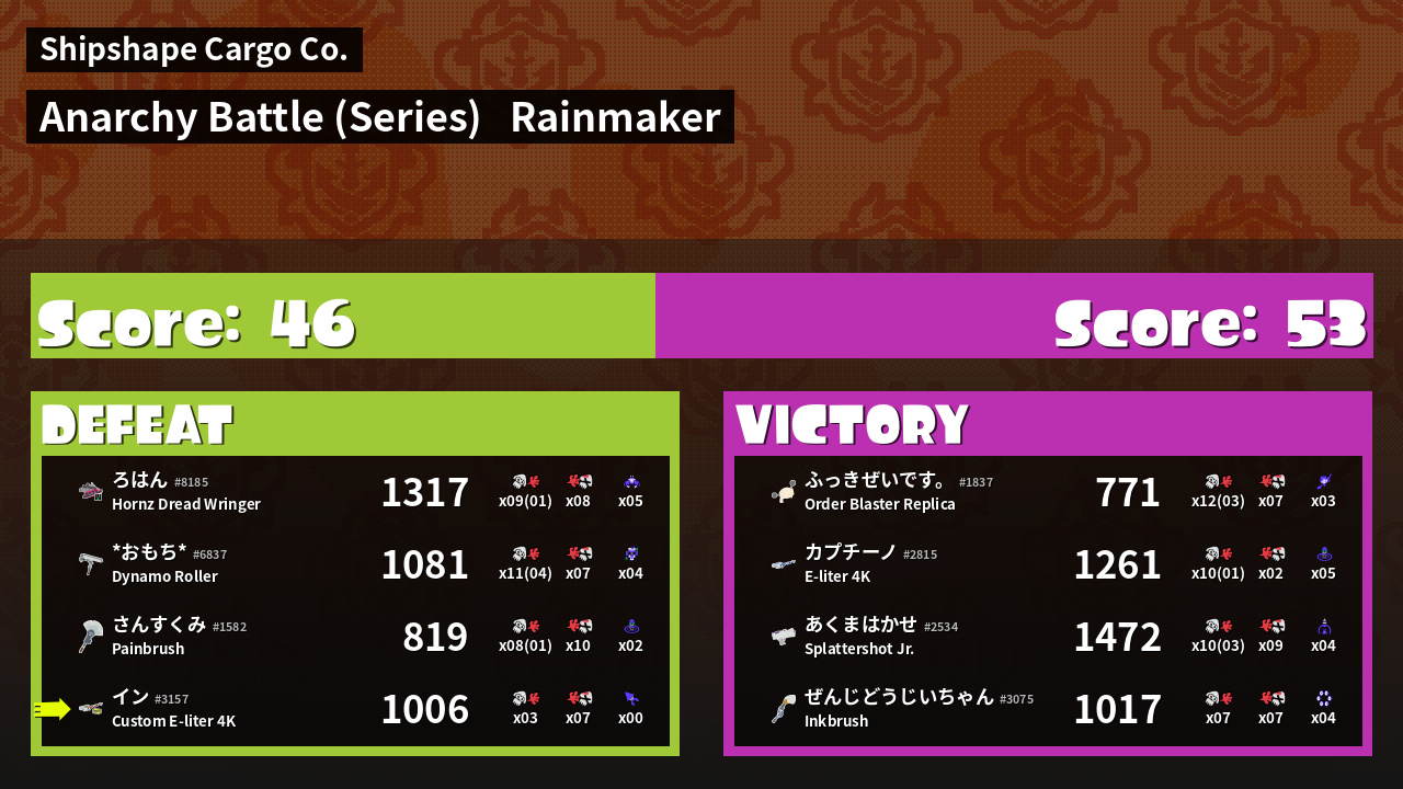 | Mode | Rainmaker - Anarchy Battle (Series) |