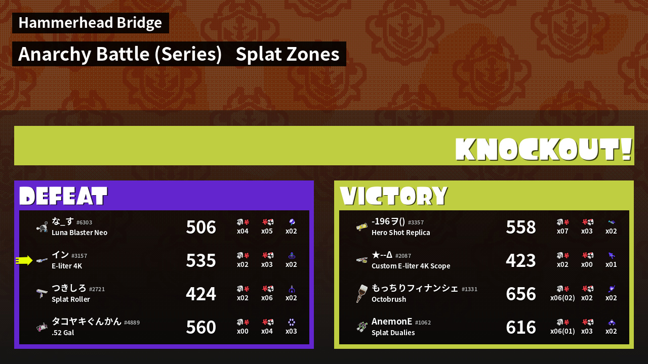 | Mode | Splat Zones - Anarchy Battle (Series) |