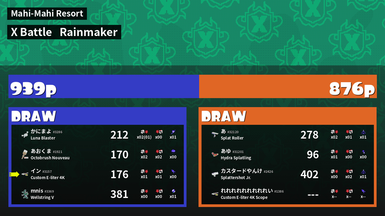 | Mode | Rainmaker - X Battle | ||