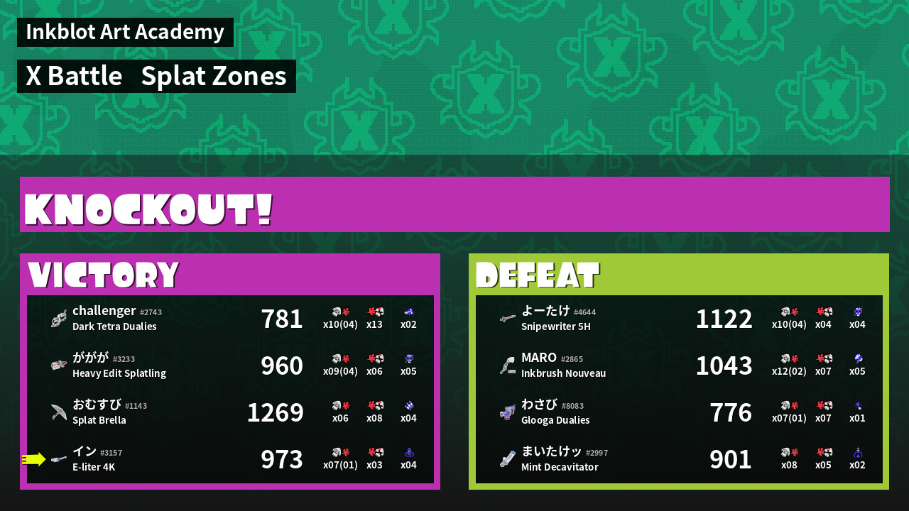 | Medals | #1 Super Jump Spot #1 Enemy Splatter #1 Wave Breaker User |