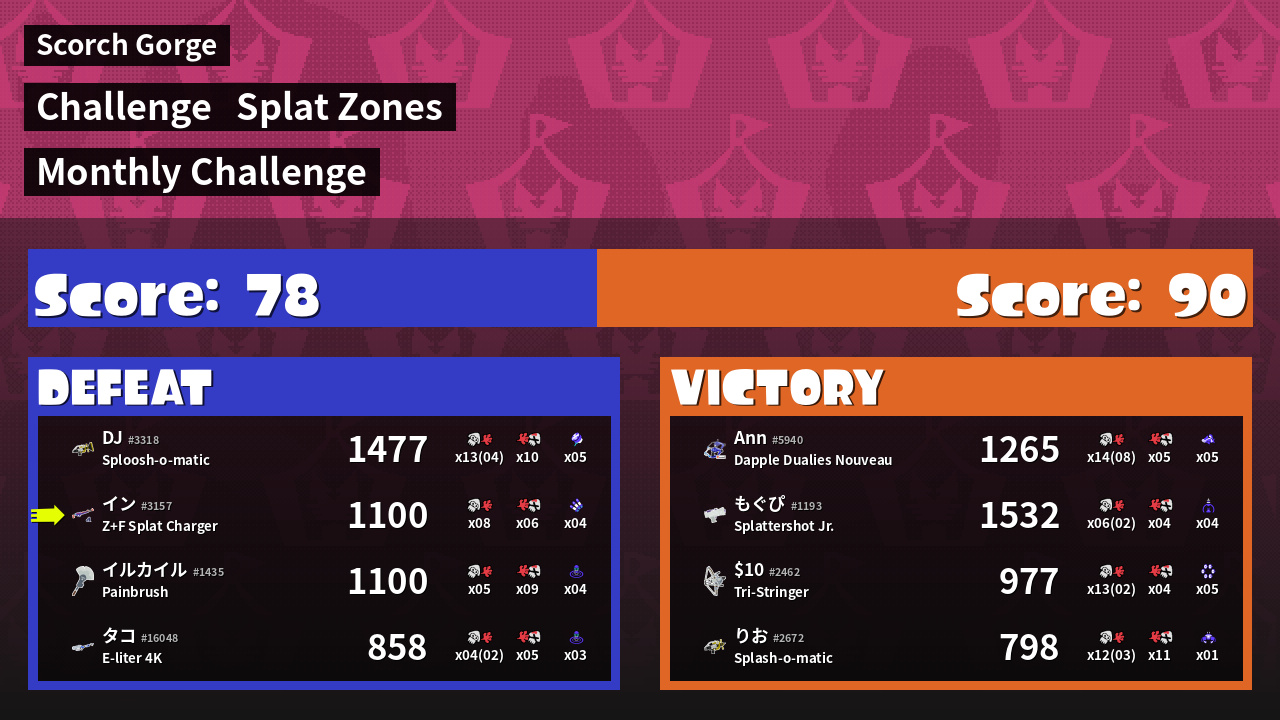 | Mode | Splat Zones - Challenge | ||
