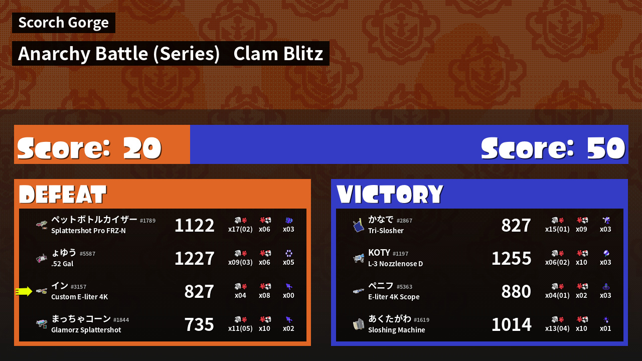 Results of イン's Battle