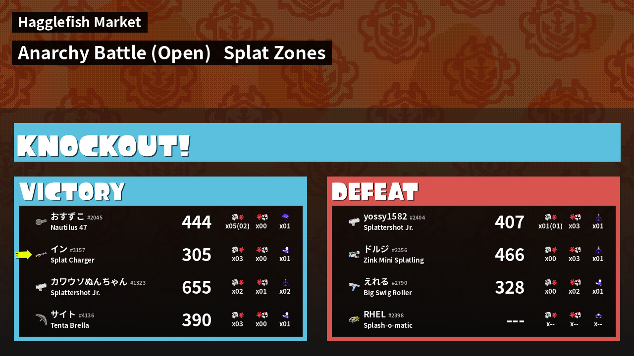 | Mode | Splat Zones - Anarchy Battle (Open) | ||