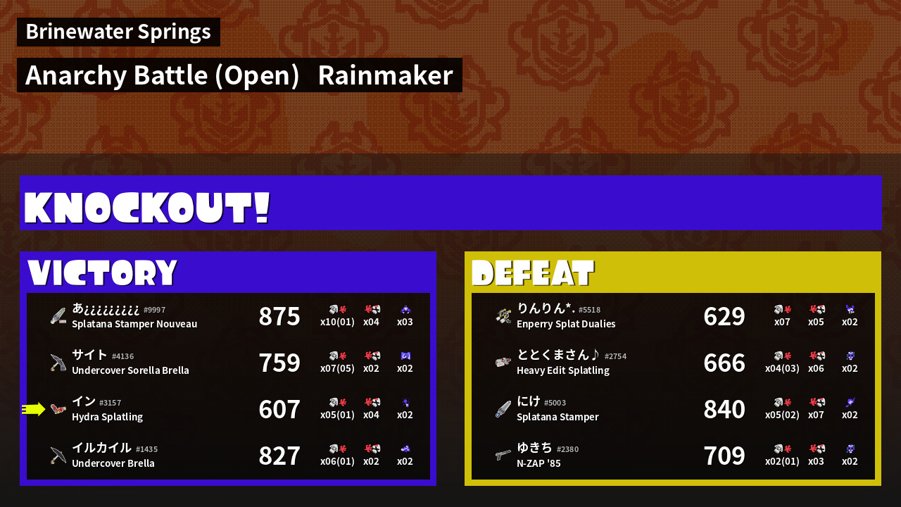 | Mode | Rainmaker - Anarchy Battle (Open) | ||