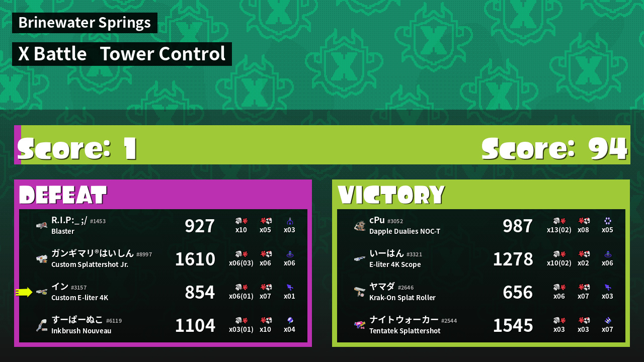 | Medals | #1 Super Jump Spot #2 Overall Splatter #2 Enemy Splatter |