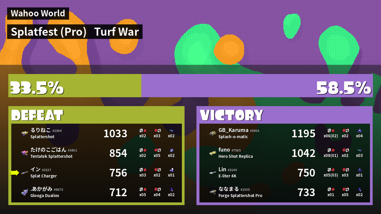 | Medals | #1 Ink Consumer #2 Overall Splatter #2 Super Jump Spot | ||
